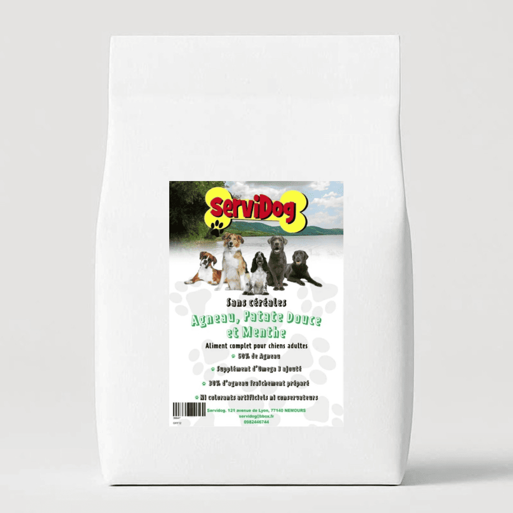 Agneau 50 % (y compris de l’agneau fraîchement préparé 30 %, de l’agneau séché 18 % et du bouillon d’agneau 2 %), patate douce (23 %), pois (9 %), pomme de terre, protéine de pois, graines de lin, pulpe de betterave, complément oméga-3, minéraux, menthe (0,2 %), Fructooligosaccharides (FOS, 96 mg/kg), Mannanoligosaccharides (MOS, 24 mg/kg).